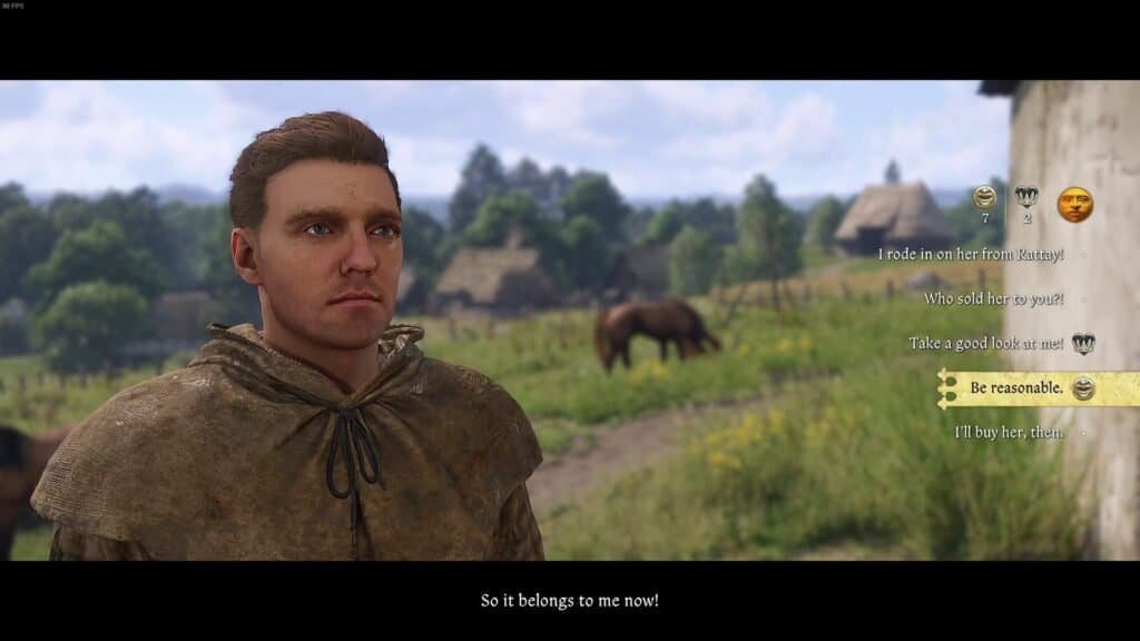 If your silver tongue isn’t leveled up yet, you can always just buy Pebbles — or another horse — from the same trader in Semine.
